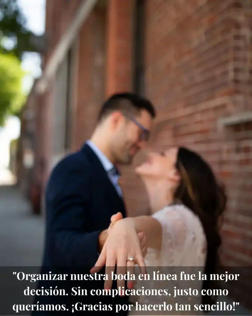 Bodas 100% legales, rápidas y seguras en menos de 24 horas. Reserva tu boda ahoraContáctanosPara parejas a distancia, con poco tiempo o que desean algo distinto: casarse nunca fue tan sencillo y seguro